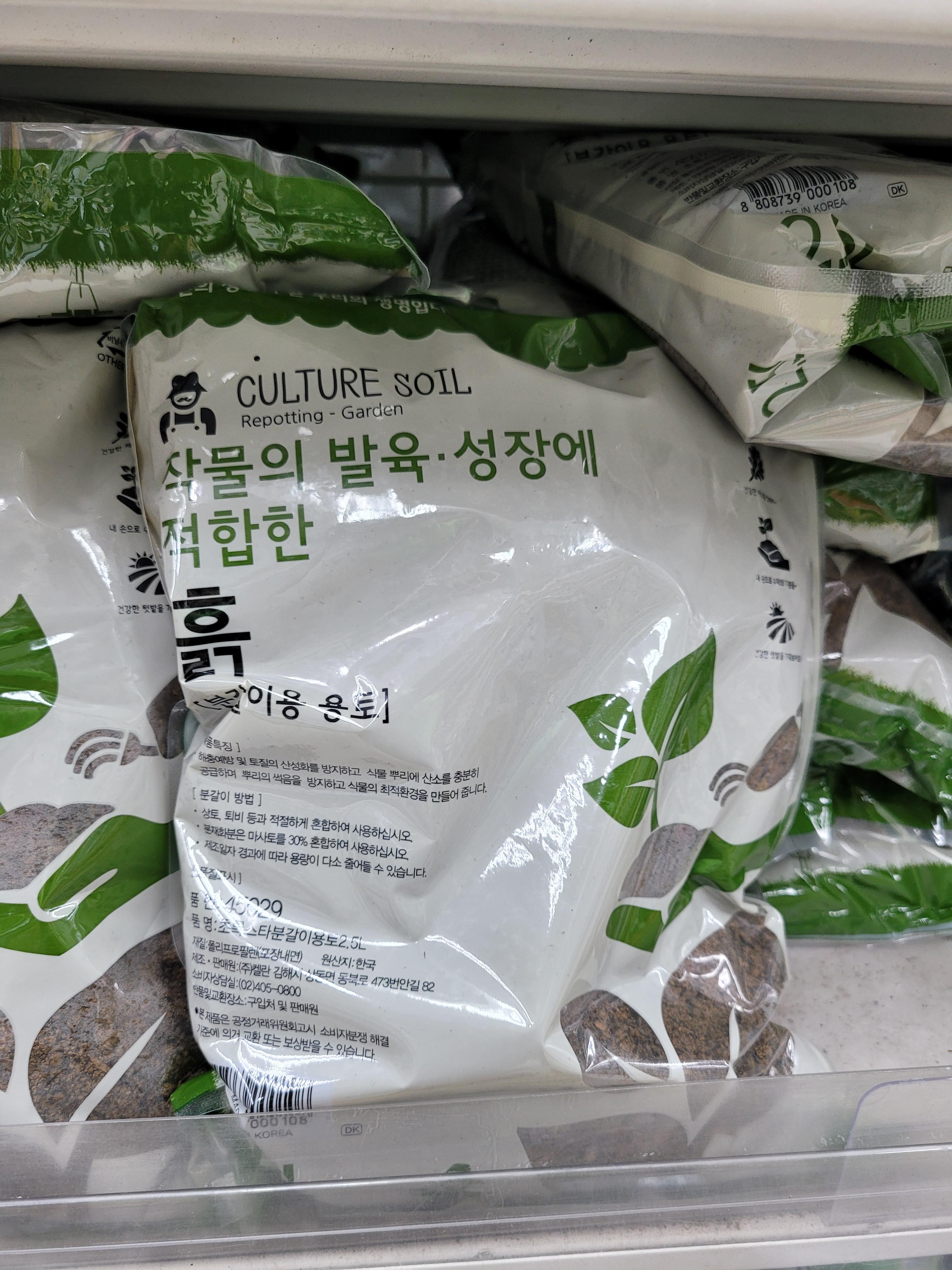 원예용품 코너에 가보니 다양한 분갈이 흙 제품들이 진열되어 있었지요.