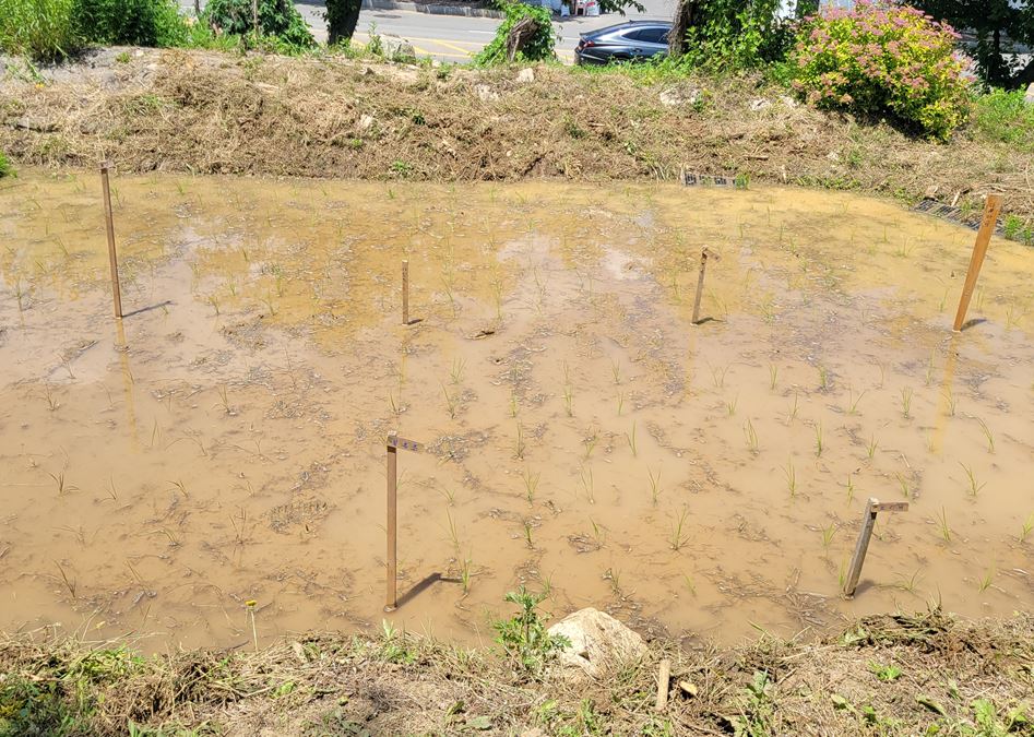 뒤집기 작업을 마친 후 1주일 후 논에 물을 공급하여 토양이 잠길 수 있도록 작업을 진행하였습니다.