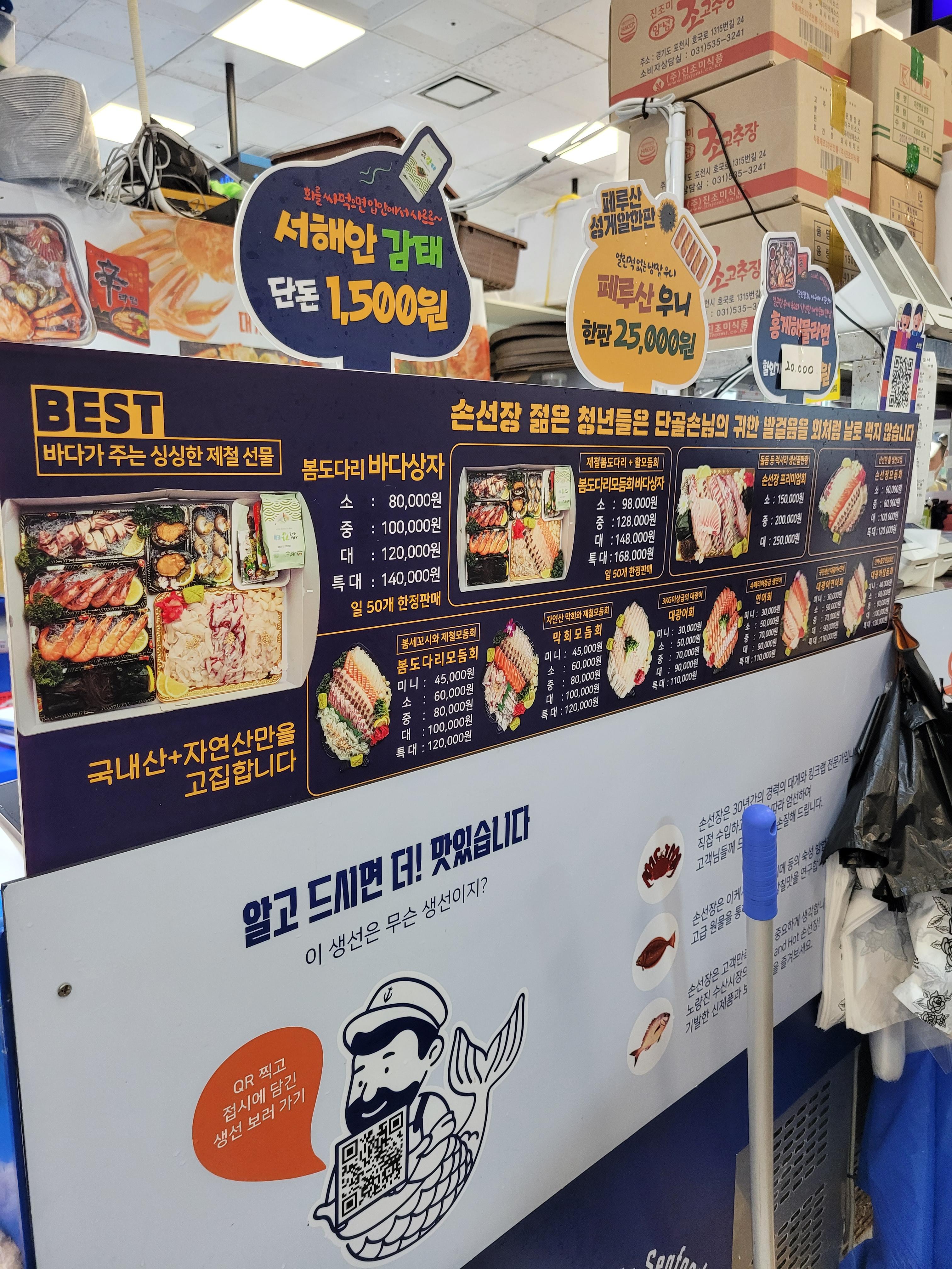 그래서 사전에 노량진수산시장에 있는 몇몇 곳을 검색해보고 정가로 판매를 하고 있는 몇몇 곳들의
