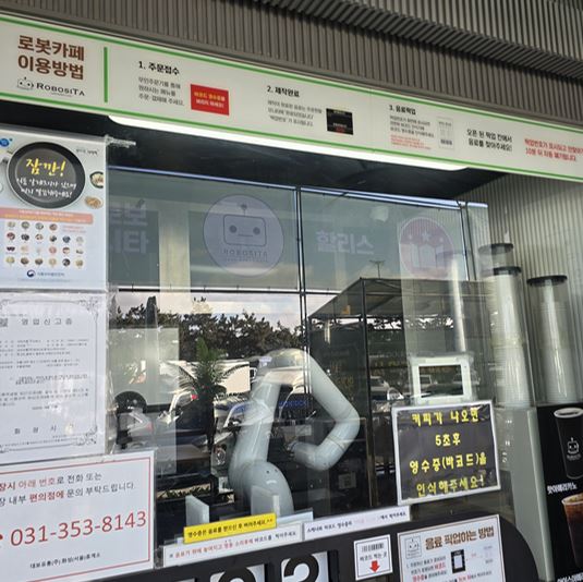 점차 로봇시장이 확대되고 있다는 걸 휴게소에도 느낄 수 있는 것 같습니다. 오늘 방문한 화성휴게소의 경우에도 로봇커피 브랜드인 "로보시타" 와 오랜 시간 동안 우리에게 익숙한 "할리스커피" 두 매장이 같은 휴게소 공간에서 경쟁하고 있는 모습니다.