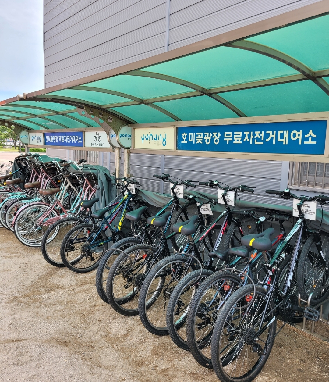 포항시에서 운영하는 무료자전거 대여소 입니다. 이름은 포항낭만자전거로 새천년기념관 옆 관광안내소 쪽에 위치하고 있습니다.
