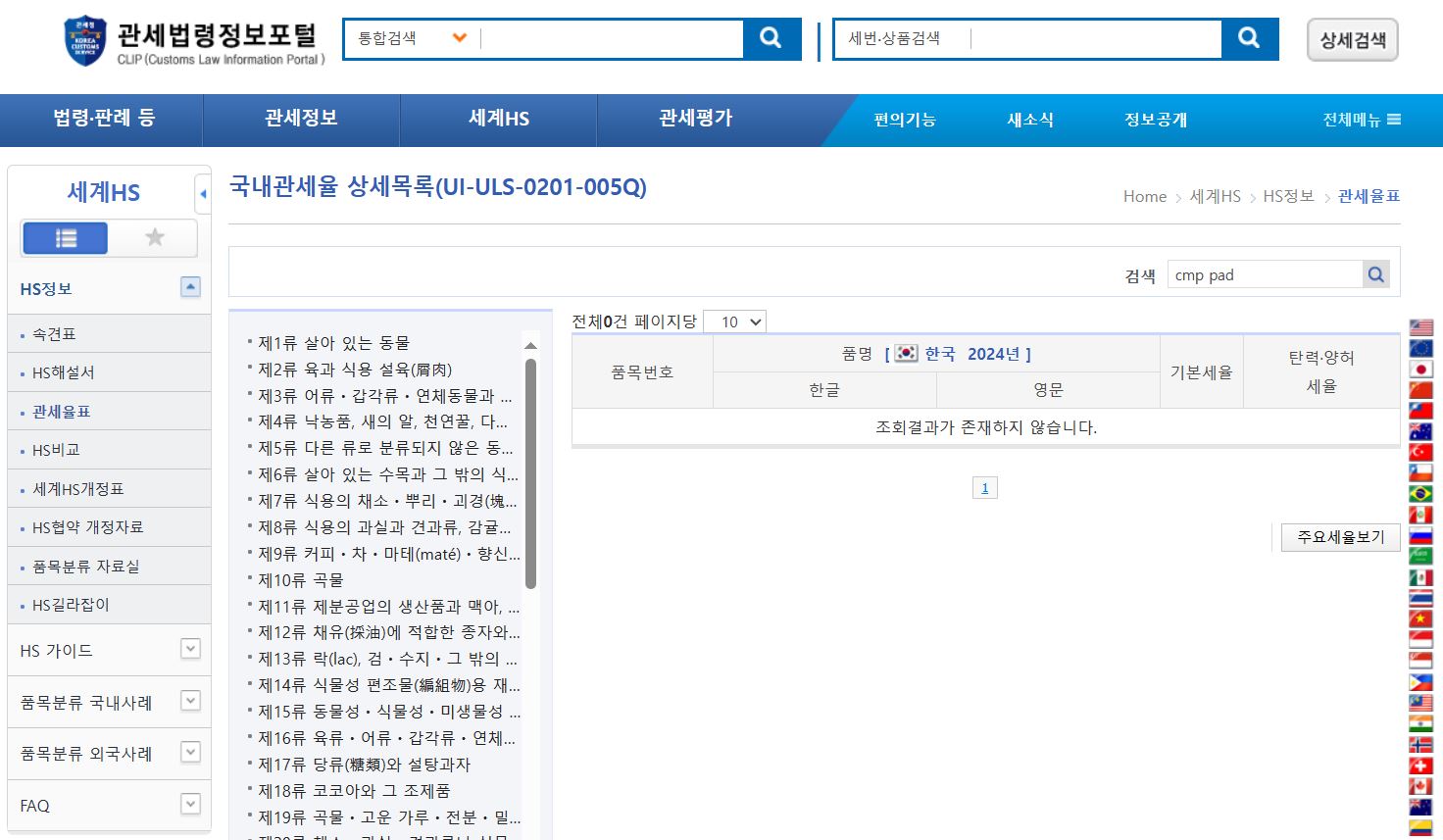 원하는 항목이 hs code 조회에 바로 나왔으면 좋겠지만 이번 검색을 진행한 cmp pad 의 경우 검색해 항목을 진행하면 결과가 조회되지 않습니다.