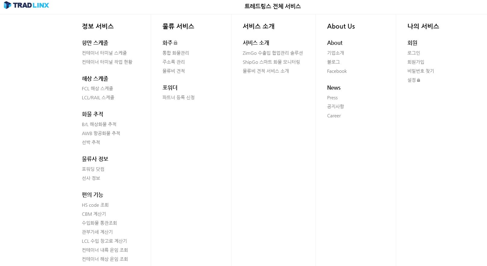가장 접근이 쉬운 홈페이지는 트레드링스( 트레드링스 수출입 물류 플랫폼 (tradlinx.com) )라는 수출입 물류서비스를 제공하는 홈페이지 입니다.
