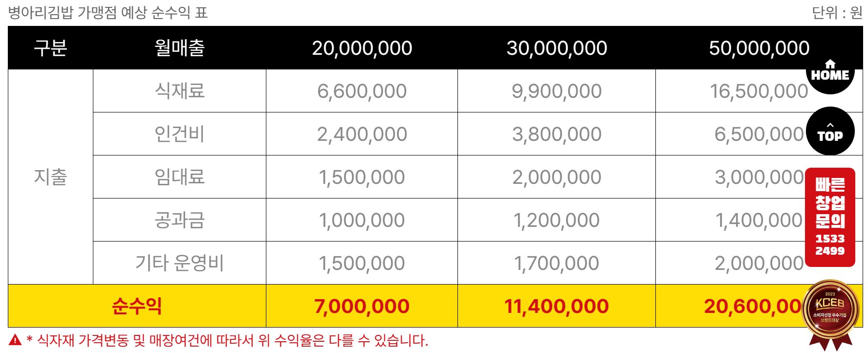 병아리김밥 예상 순수익